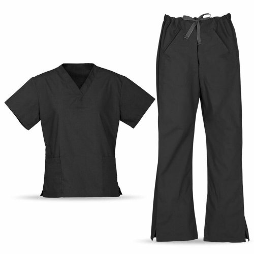 Black Soft Scrubs Shirt Top Pants Bottom Set Hospital Nurse Vet Doctor