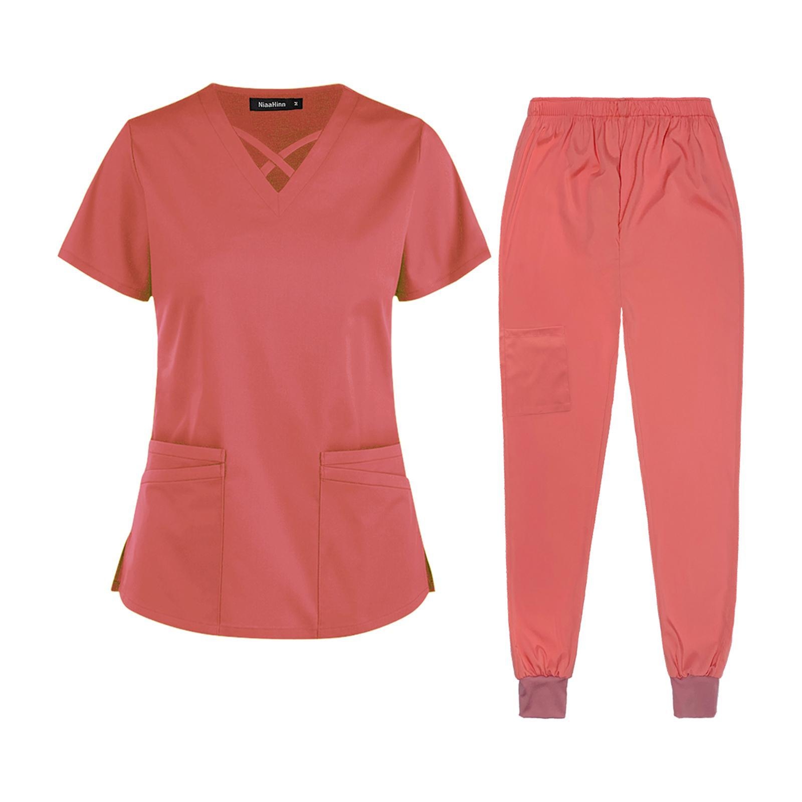 Women Elastic Scrub Pants Set Breathable V Neck Short Sleeve Solid Color Poly... | 2025-07-22 14:29 | 77k |