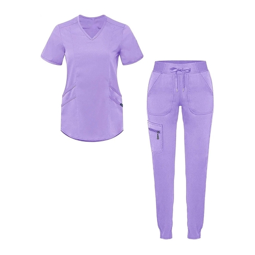 Women Elastic Scrub Pants Set Breathable V Neck Short Sleeve Solid Color Poly... | 2025-07-22 14:29 | 18k |