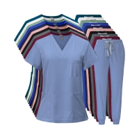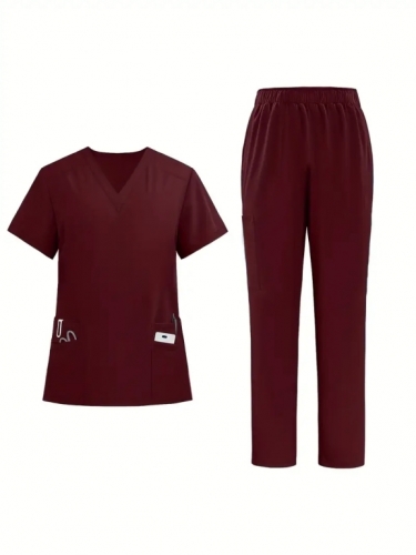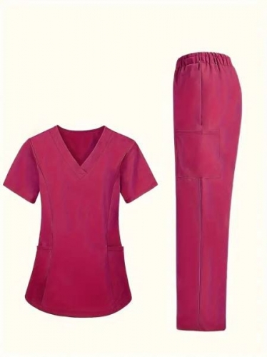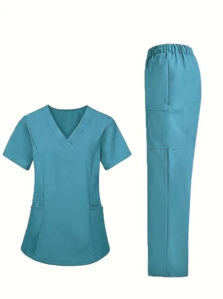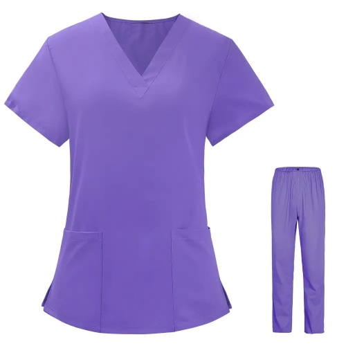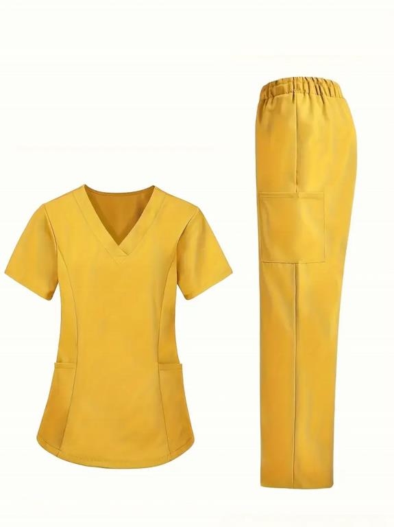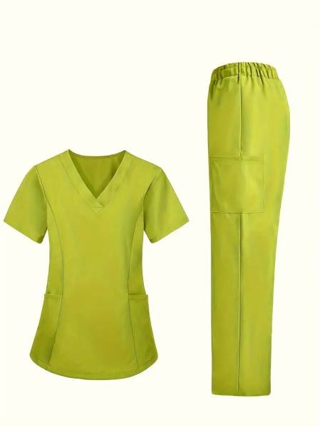 Women'S Elastic Scrub Pants Set, Breathable, V-Neck, Short Sleeve, Solid Colo... | 2025-07-22 14:29 | 4k |