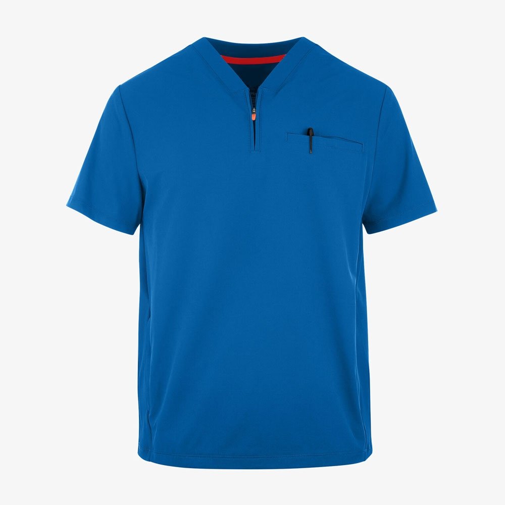 With a hidden zipper closure and a welt chest pocket all you see are the clean lines of our Infinity Men's 3-Pocket STRETCH Rib-Knit Panel Zip Placket V-Neck Scrub Top. Take your Infinity game up a level. In addition to the great Infinity quality, design and functionality GNR8 has eye popping vivid orange accents to make you shine. Plus antimicrobial fabric technology reduces bacteria that causes odor.