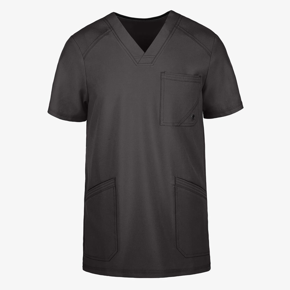 Outfitted with flexible rib-knit side panels, handsome front and back yoke, and extra pockets, our Cherokee Infinity Men's Scrub Top really does have it all.Each style in our Infinity Collection is designed with Certainty Antimicrobial Fabric Technology* which reduces the bacteria that cause odor and offers a perfect fit for all-day comfort.