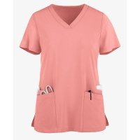 For a clean, pristine look with just enough storage, you can’t go wrong with our Zoe v-neck scrub top. Flattering curved v-neck and princess seams add a feminine touch. Easy Stretch by Butter-Soft scrub collection is designed for a modern look and easy fit for very long shifts and made with performance 4-way stretch comfort fabric that also repels lint, fur, and hair.
