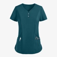 Our Demi henley y-neck scrub top is a wise addition to your workweek wardrobe. Buttons add an extra touch and side slits help you go with the flow. Easy Stretch by Butter-Soft scrub collection is designed for a modern look and easy fit for very long shifts and made with performance 4-way stretch comfort fabric that also repels lint, fur, and hair.