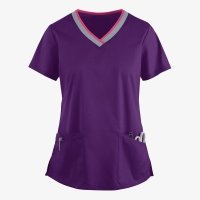 Ready to spice up your day with something sporty? The contrast detail on our women’s rounded v-neck scrub top adds a pop of color and an athletic touch. Each piece in our Butter-soft Stretch scrub collection was designed for 12+ hour shifts, and made from easy-care, 2-way stretch comfort fabric.